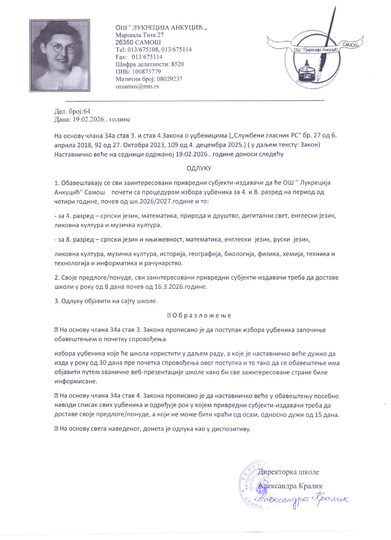 Обавештење о почетку спровођења процедуре избора уџбеника за 4. и 8. разред, на период од 4. године.
